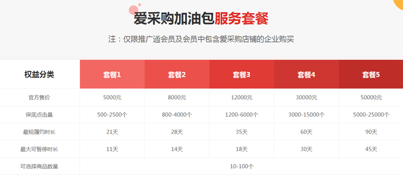 企業(yè)購買愛采購加油包服務常見問題解答問:保底點擊量是什么意思?答:加油包承諾保底點擊量,套餐所展示的數(shù)值為參考區(qū)間,因商品行業(yè)、下單時間及競爭程度等差異,保底點擊量需以實際下單時為準。問:*短履約時長是什么意思?答:即*短“實際有展現(xiàn)天數(shù)”,如加油包訂單設置暫停和節(jié)假日不營銷,則實際有展現(xiàn)天數(shù)=訂單生...